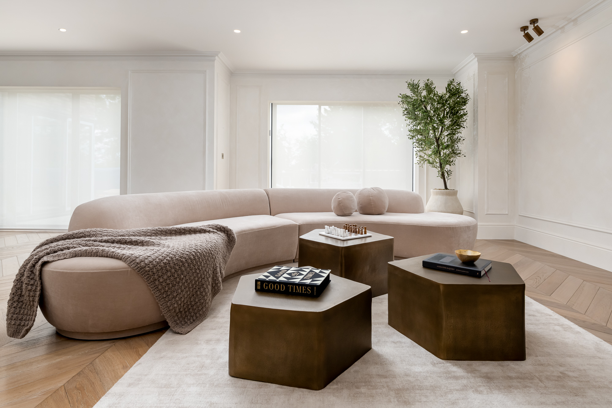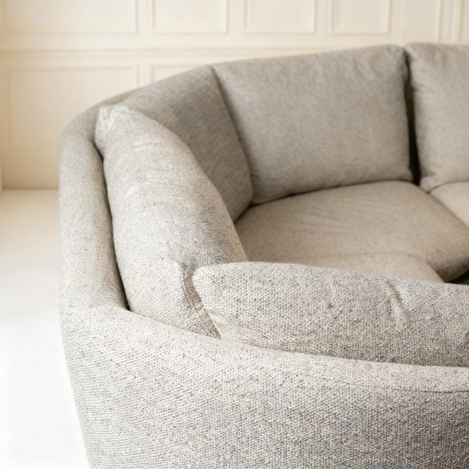The Clyde’s signature curved arm profile and deep, welcoming seat cushions create a relaxed, cocoon-like feel. With its expansive seating area and supportive back cushions, it’s ideal for family lounging, hosting, or creating a cosy corner in open-plan rooms. The low, seamless base keeps the look clean and modern, while the gentle texture of the fabric adds depth and quiet sophistication.