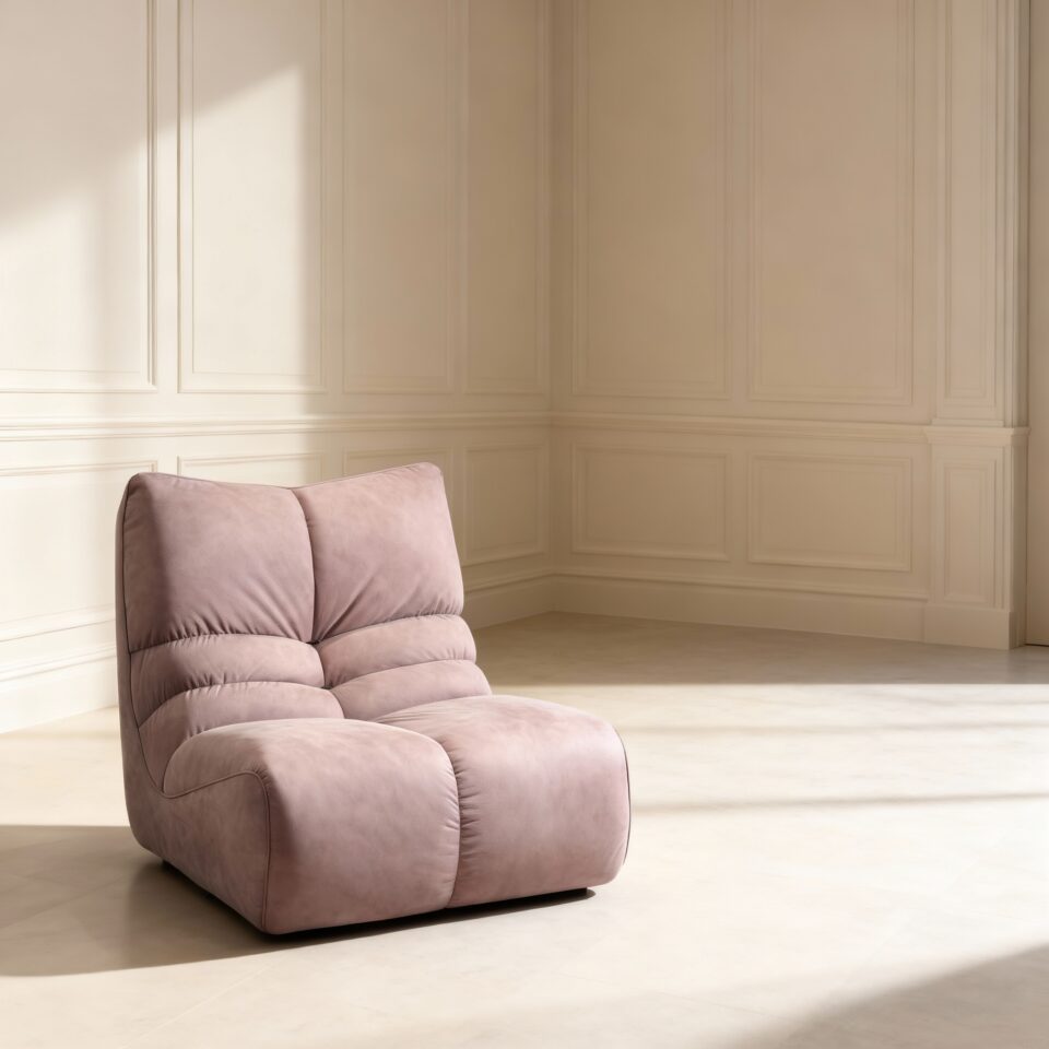 Upholstered in soft blush leather, this sculptural lounge chair offers a cocoon-like level of comfort and a beautifully tactile finish. The velvety, matte surface has a refined warmth, while the gentle tonal shading enhances the depth and richness of the leather.