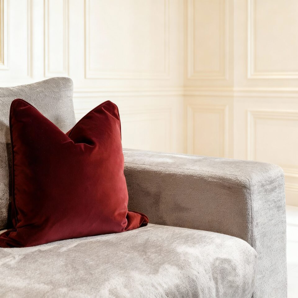 The wide seat cushions, supportive backs and gently padded arms create an inviting, cocoon-like feel, perfect for relaxed family living or sophisticated entertaining. The fabric’s velvety, brushed surface adds a subtle sheen and tactile softness, giving the sofa a luxurious, elevated character.